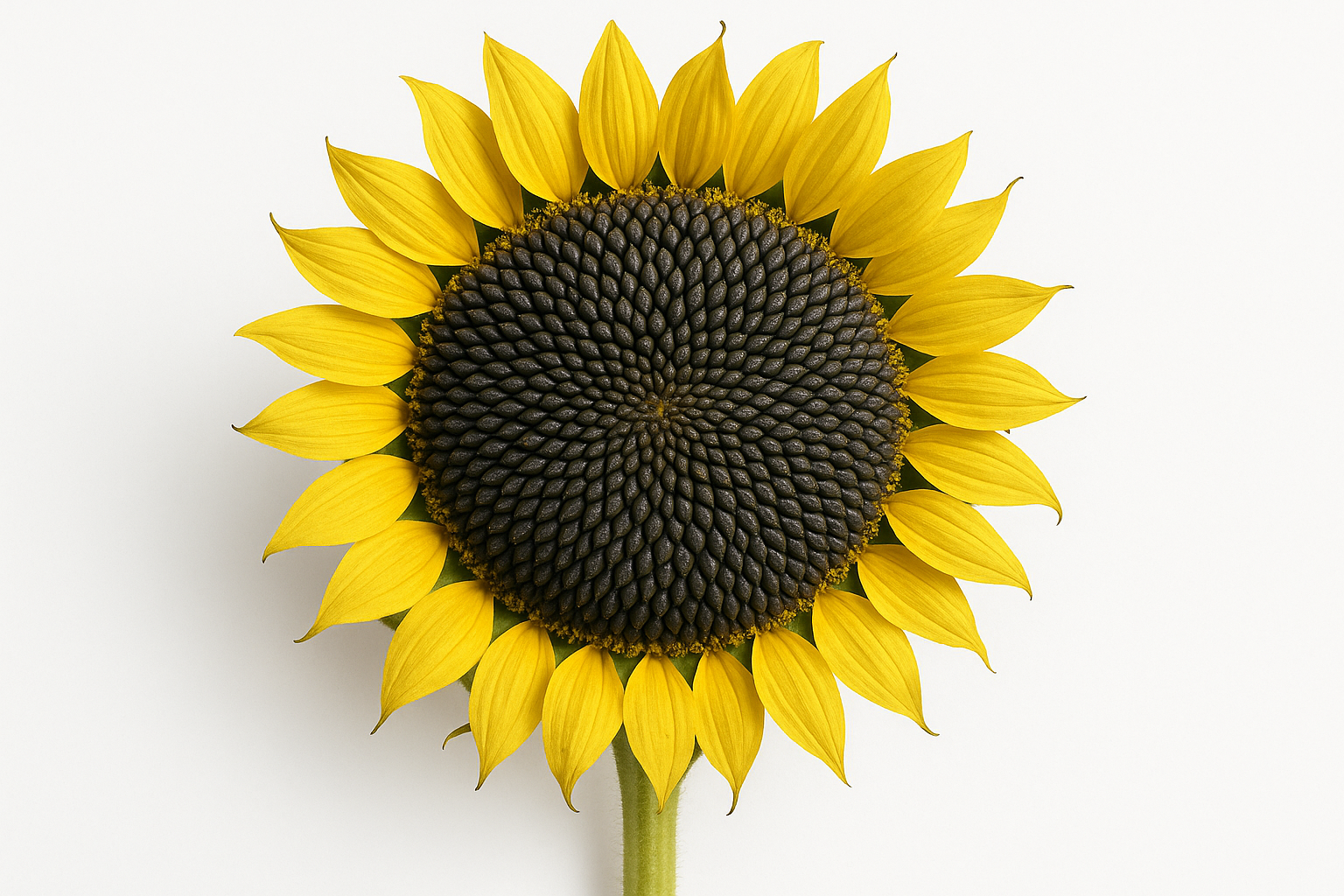 Sunflower is a bright and recognizable flowering plant that originated in North America. This image features a plant with a strong stem and a large head made up of many petals in a rich yellow color. The central part of the sunflower is filled with seeds that form a symmetrical spiral pattern. This unique composition creates visual interest and is perfect for various graphic works.