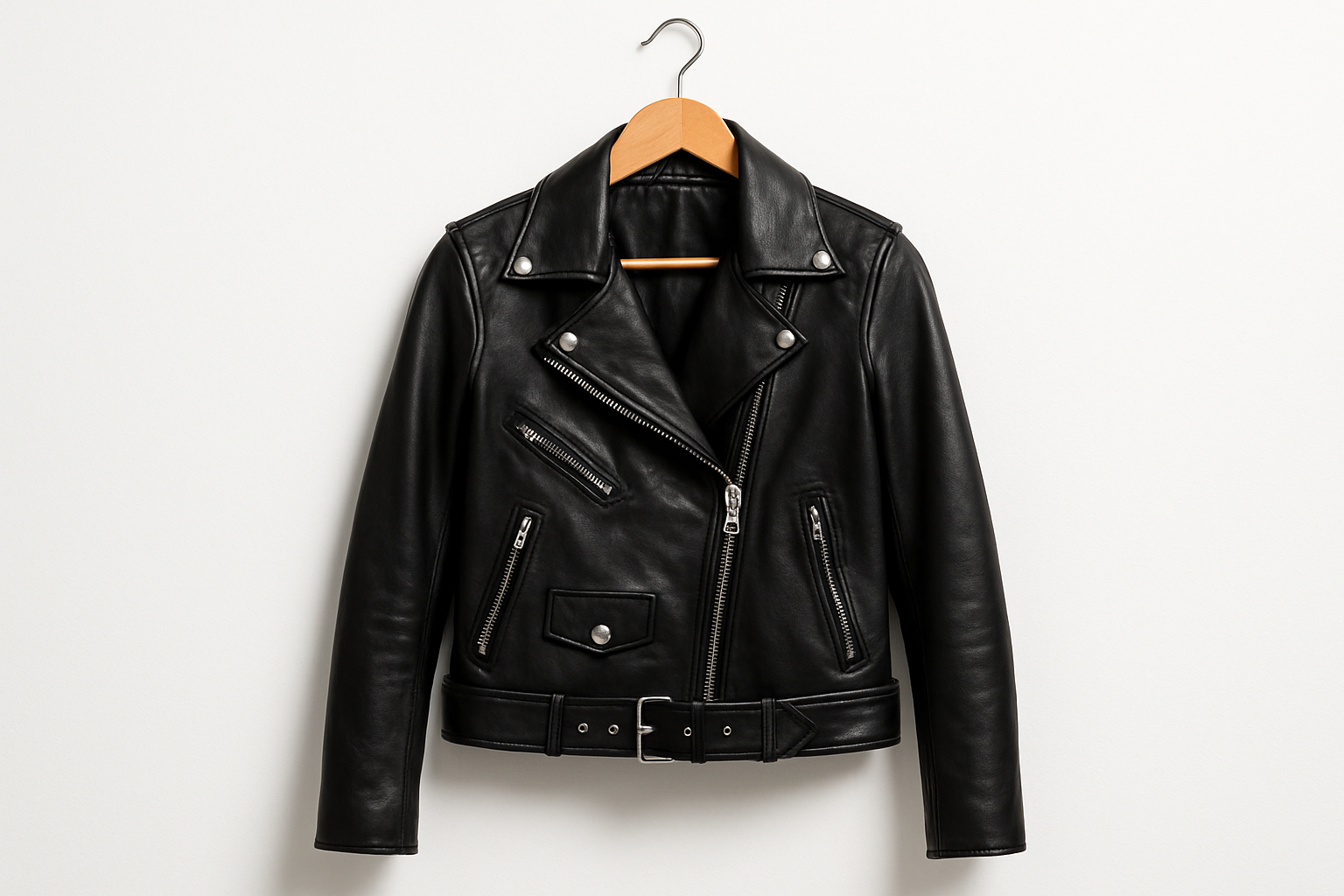 The image is ideal for use in online stores, specialized fashion blogs, or articles dedicated to clothing trends. It can attract the attention of buyers and help sell leather jackets by highlighting their style and versatility. Additionally, this image can be used on social media for promoting fashion collections or for creating inspiration for stylish looks. Due to its visual appeal, it could become part of promotional materials, posters, and advertising campaigns.