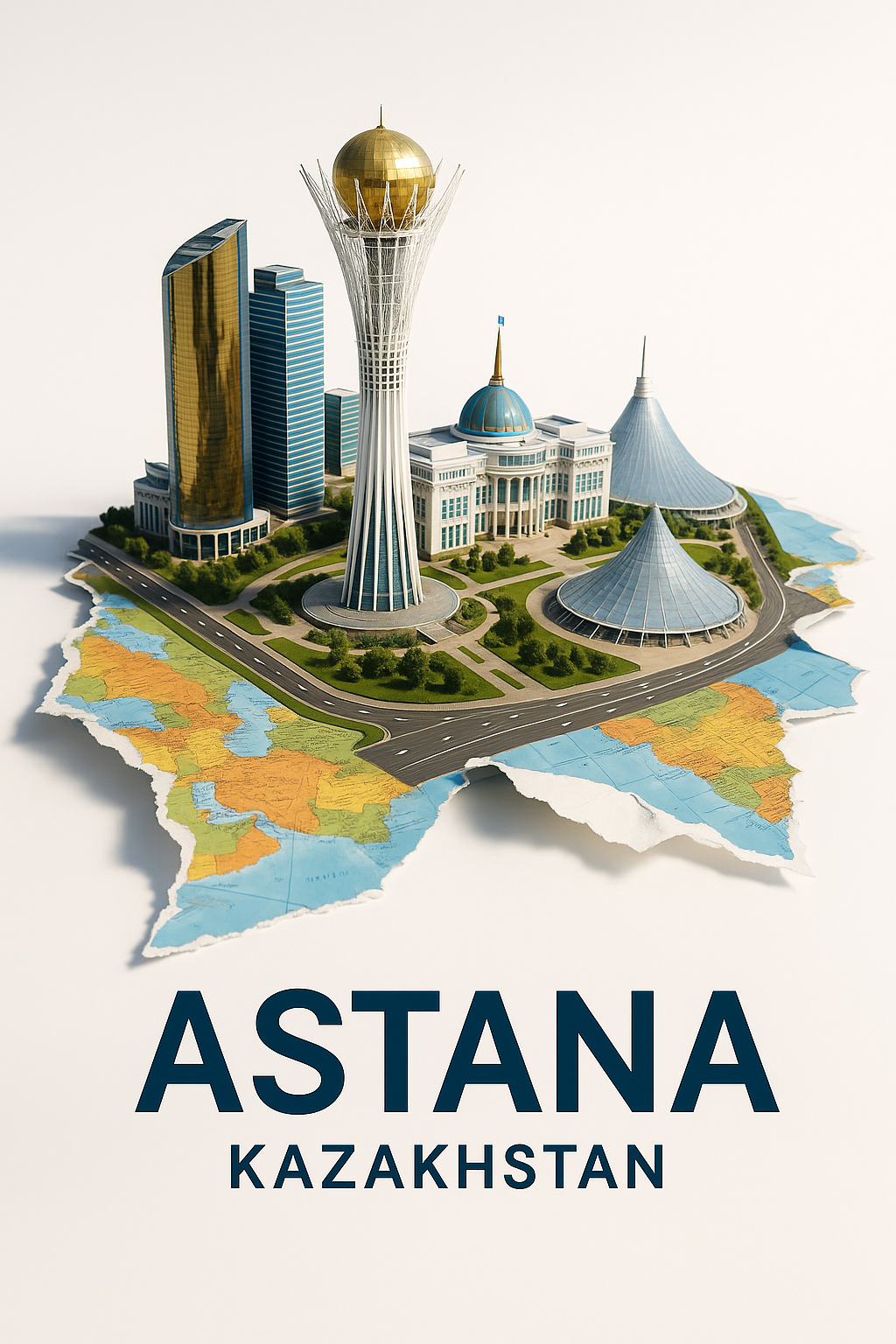 Elements of Astana Architecture against the Background of the Map of Kazakhstan