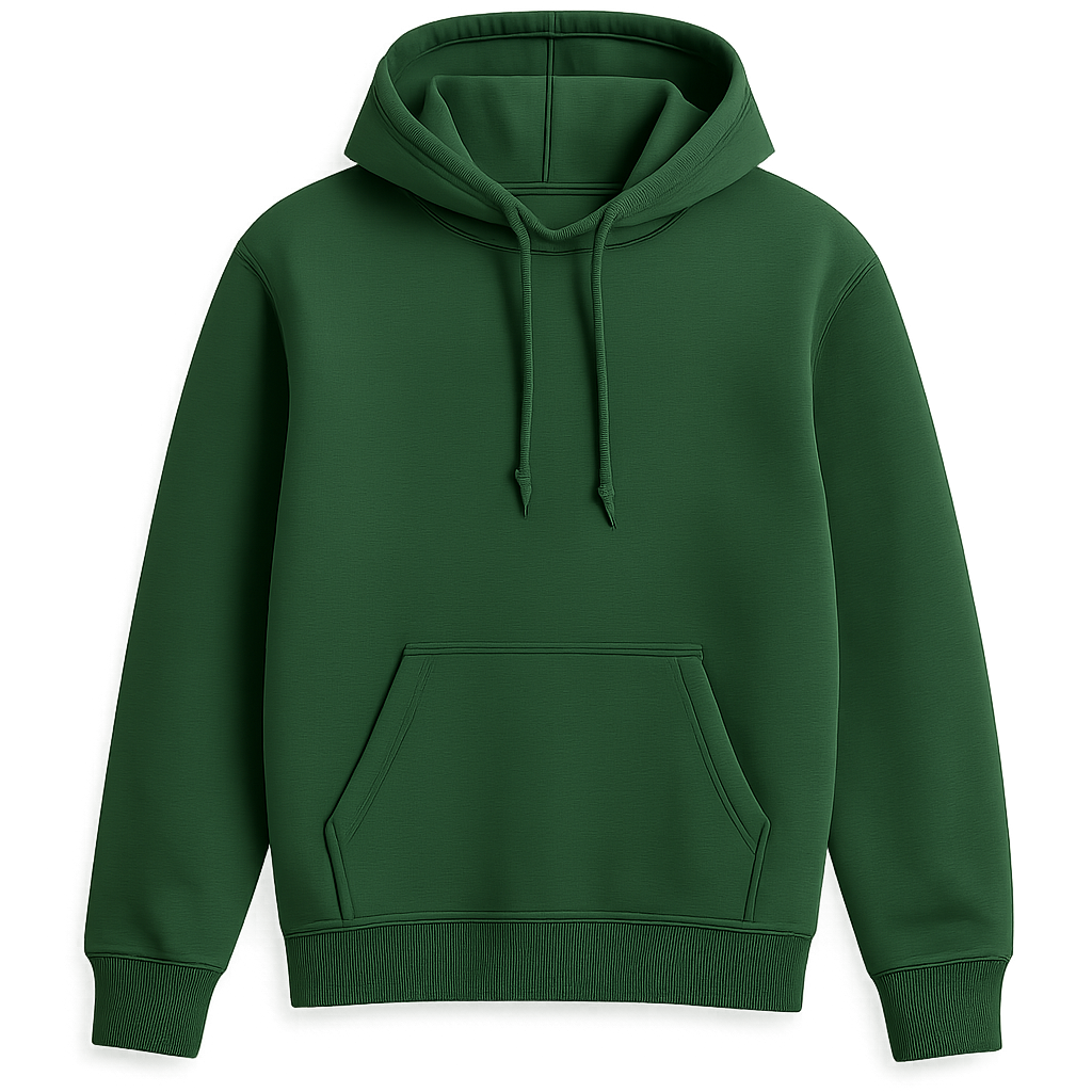 The image showcases a green hoodie made from soft and comfortable material. It features a classic cut with a hood and long sleeves. On the front, there is a spacious kangaroo pocket, providing convenience for storing small items or warming hands. This hoodie is perfect for everyday wear during the autumn-winter period. The green color adds freshness and naturalness to the item, making it a versatile option for pairing with various outfits. The stylish design and high-quality workmanship make this wonderful hoodie an ideal part of the wardrobe for both men and women.