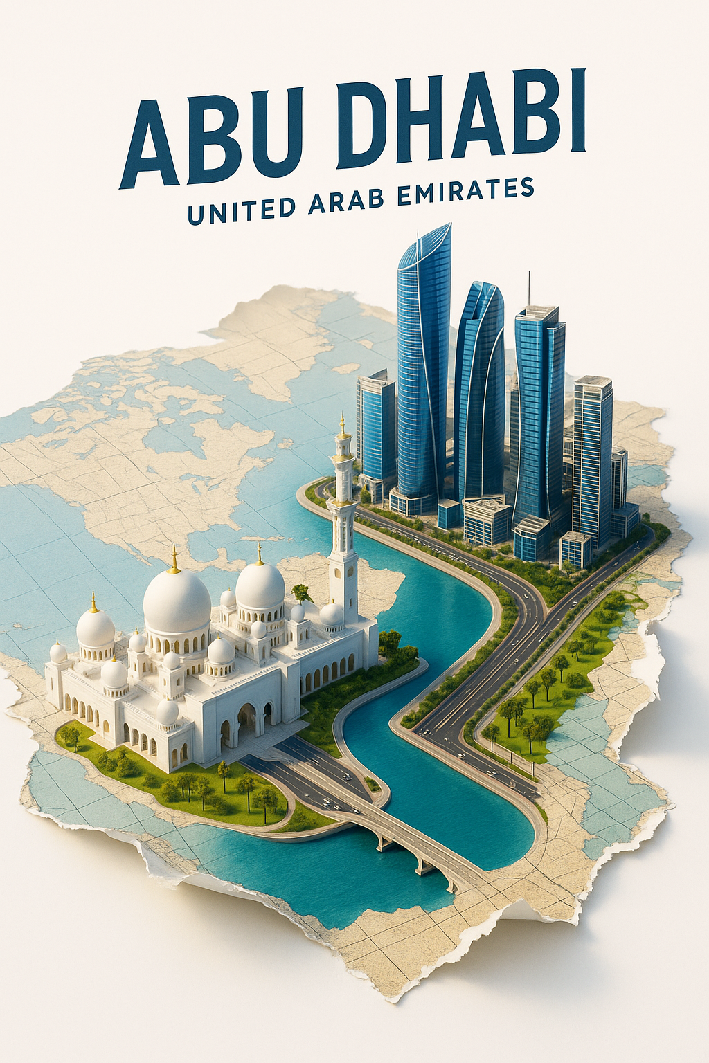 This image can be used in tourist promotional materials, on travel-related websites, and in educational projects focused on the architecture and culture of Abu Dhabi. It draws attention to famous architectural landmarks and can be useful for creating guides, brochures, or presentations about the capital of the United Arab Emirates, its history, and development. The model can also serve in design work to create inspiring imagery of modern cities.