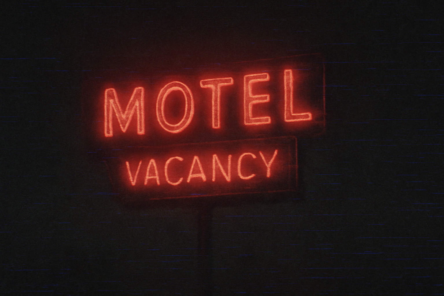 This image can be used in various fields, such as advertising in the hospitality business, articles and blogs about travel, as well as for designing materials related to leisure and tourism. Such a sign style can attract the attention of potential clients looking for affordable accommodation. The image can also serve as a design element for creating promotional posters, flyers, or websites related to hotel services.