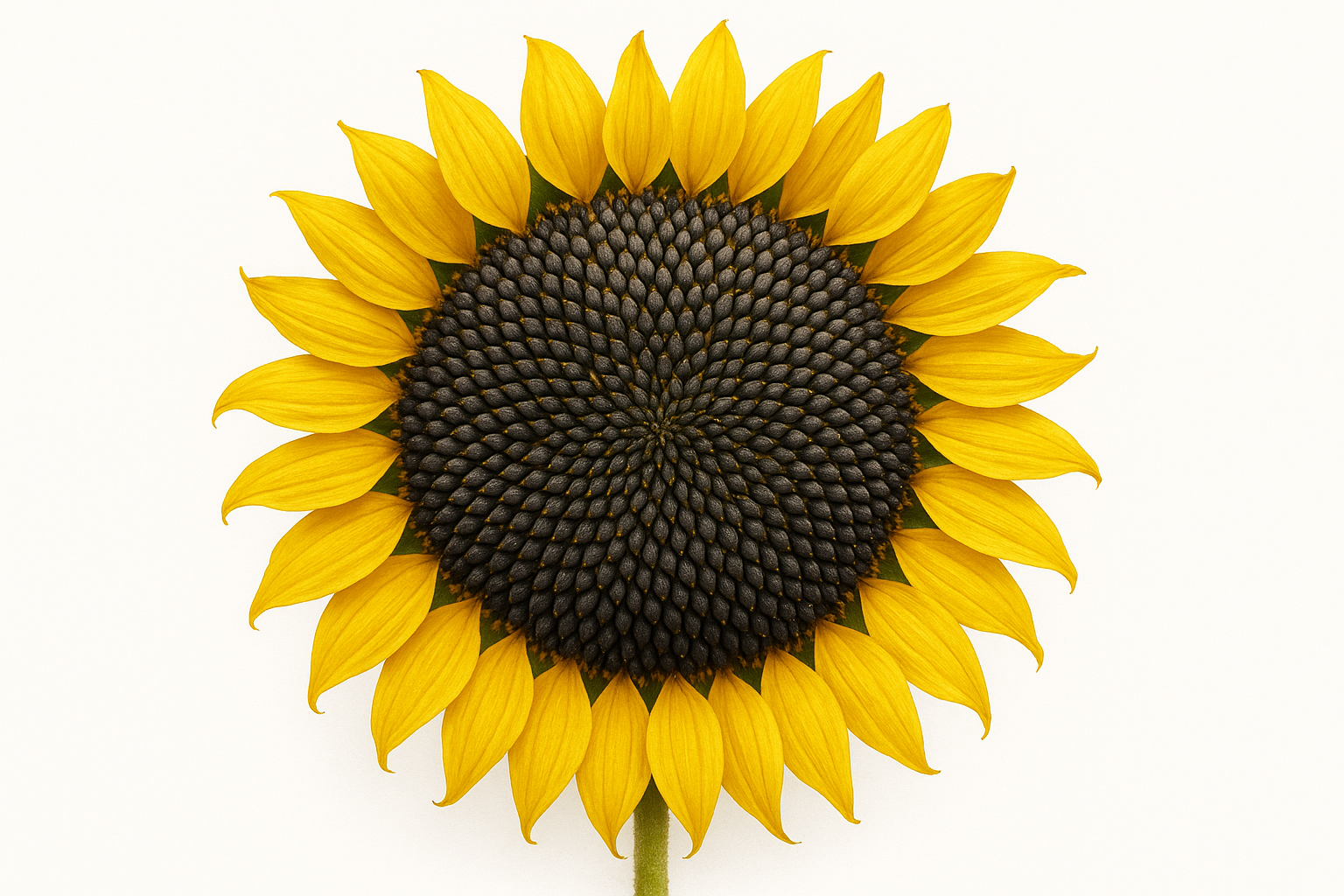 The image features a close-up of a sunflower. The flower has bright yellow petals surrounding its round center filled with black seeds. This composition creates an impression of sunny brightness and warmth, reminiscent of summer and nature. The petals have a smooth texture, and the seeds are arranged in a clear geometric pattern at the center. The background is monochromatic, which makes the flower stand out and attract attention.
