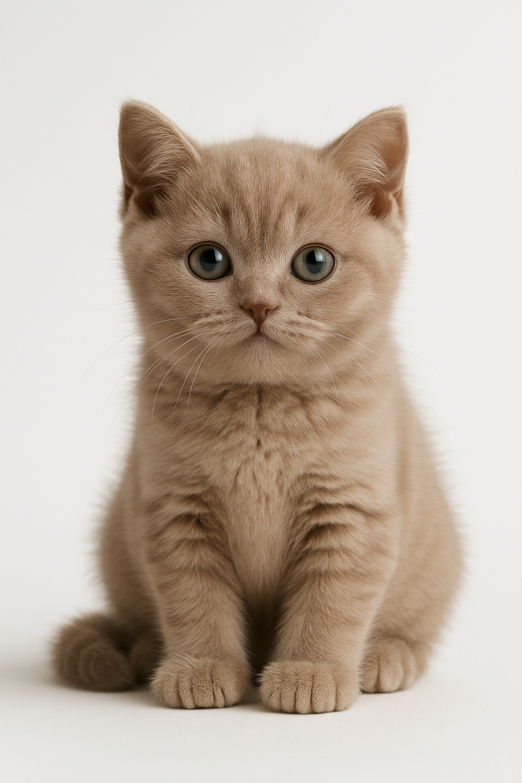 El fondo claro crea una atmósfera tranquila y limpia, donde se centra la atención en el encantador animal. El gatito posando en una postura estática hace que la imagen sea especialmente adecuada para los amantes de los animales y de las fotografías de mascotas.