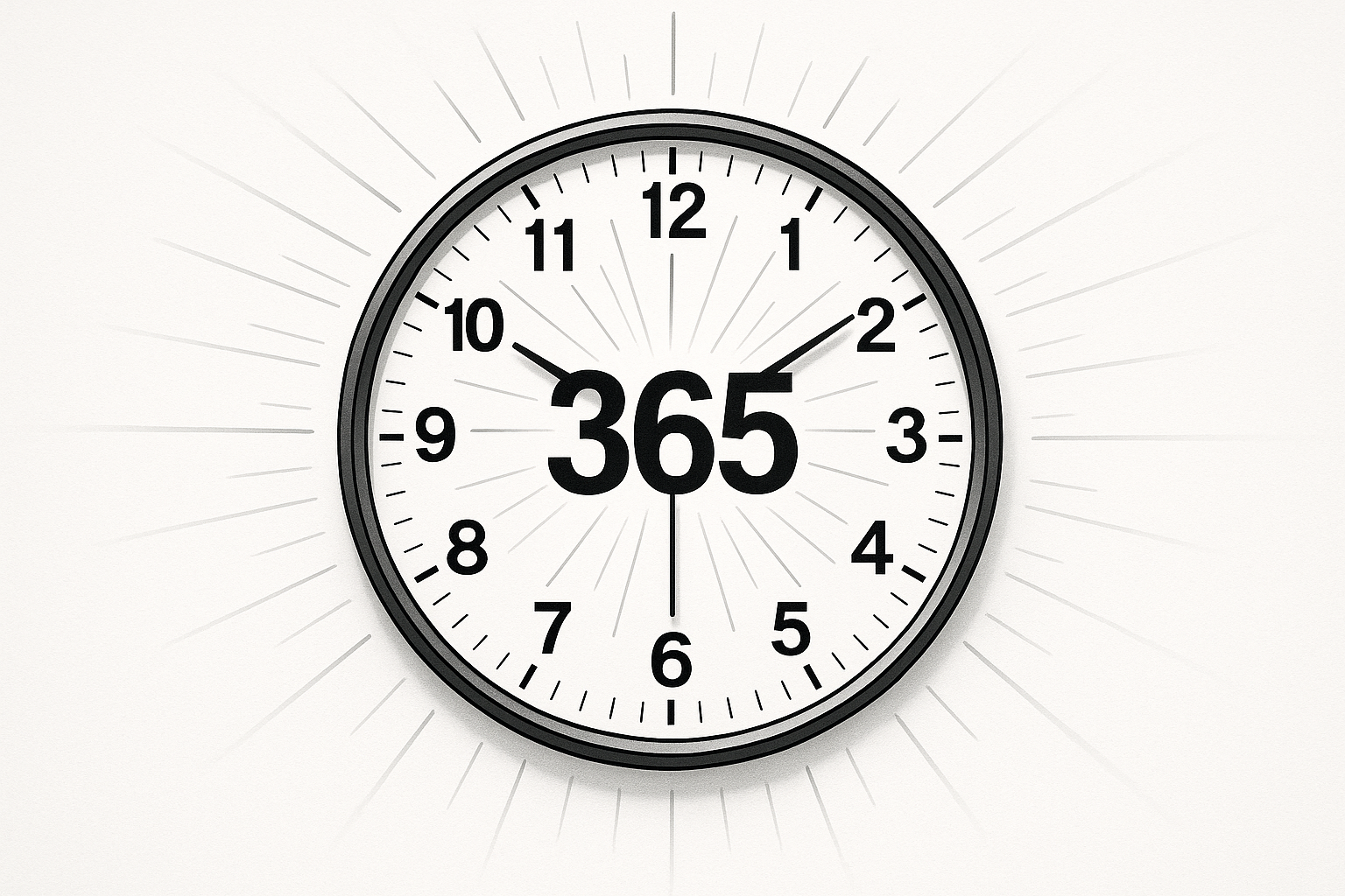 Настенные часы с большой цифрой 365 и лучами на белом фоне