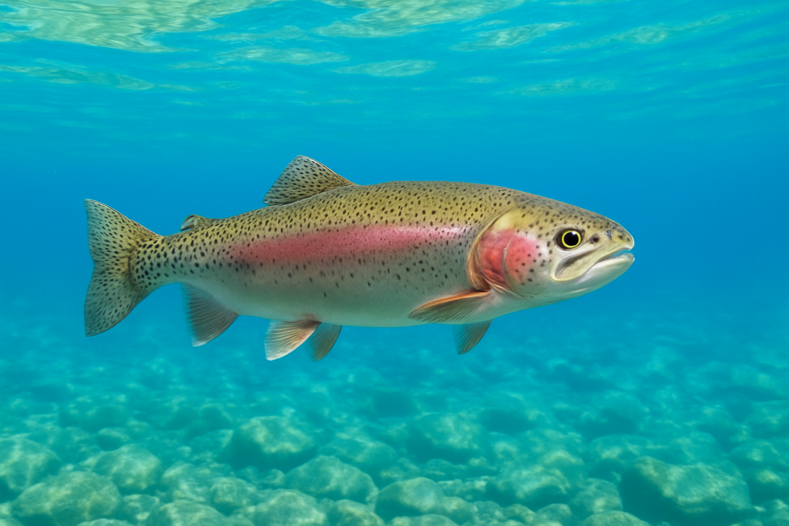 Подводный мир: радужная форель в чистых водах