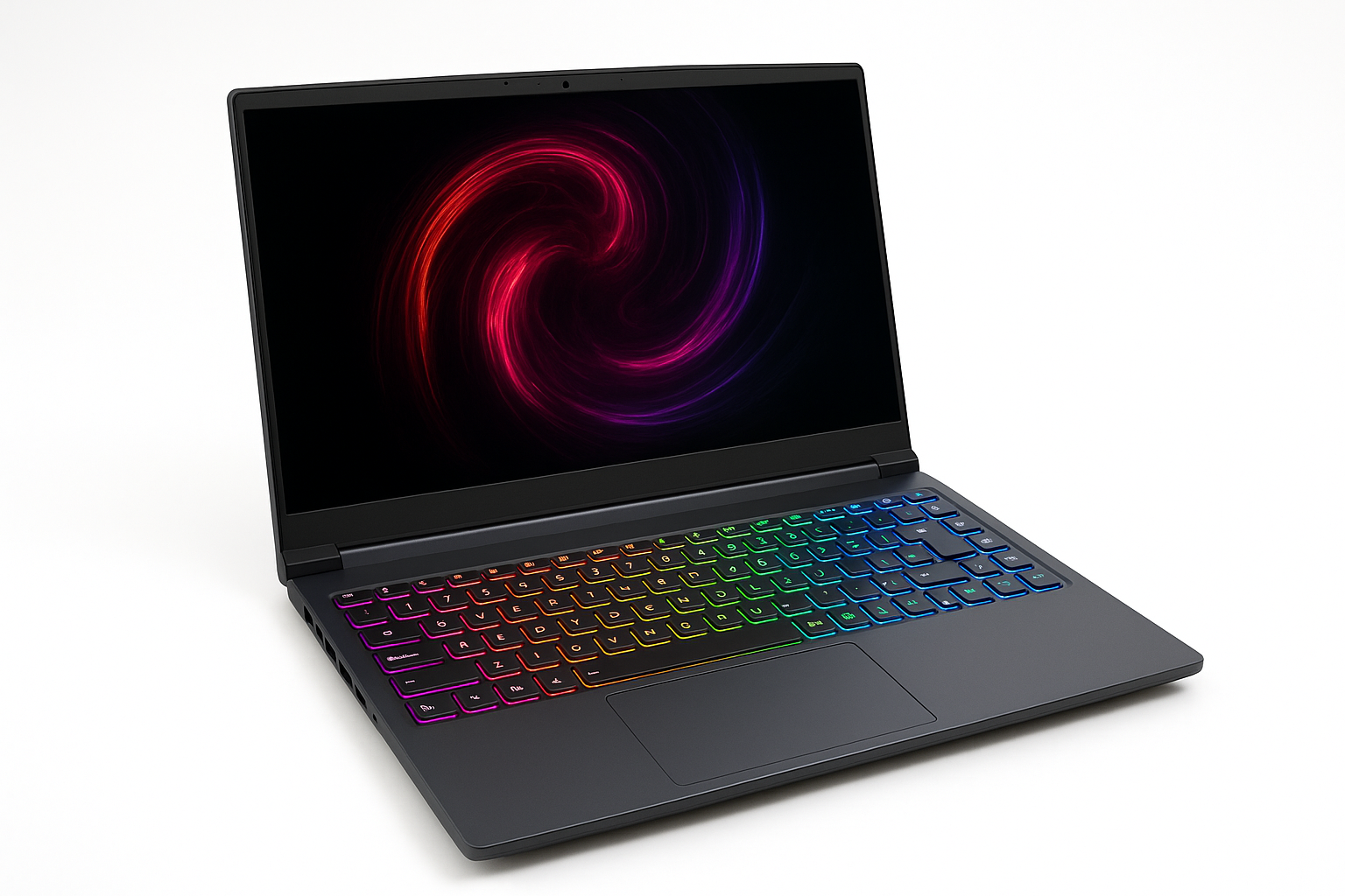 Современный ноутбук с RGB клавиатурой и эффектами на экране