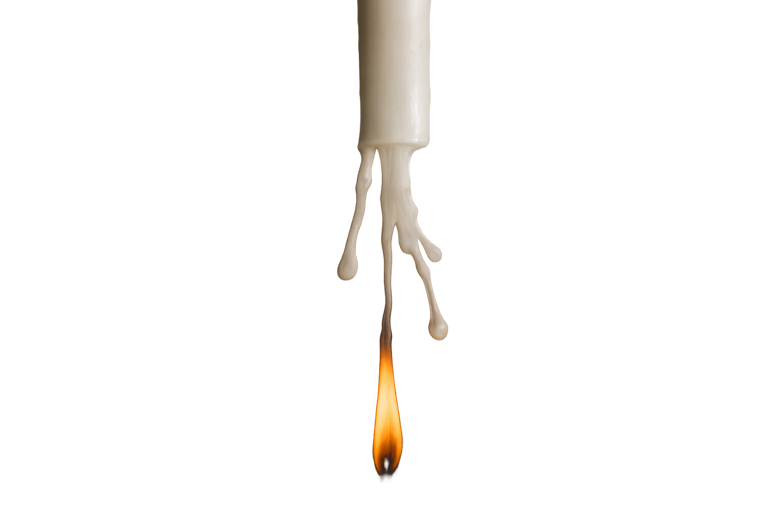 На изображении представлена фитильная лампа, из которой вертикально выходит пламя. Фитиль имеет форму нескольких ответвлений, словно ручки, и плавно переходит в источник огня. Огненный поток ярко выделяется на тёмном фоне, создавая контраст и акцент на свете и тепле, исходящем от пламени. Лампа выполнена в светлом цвете, что способствует визуальному интересу и делает изображение более привлекательным.